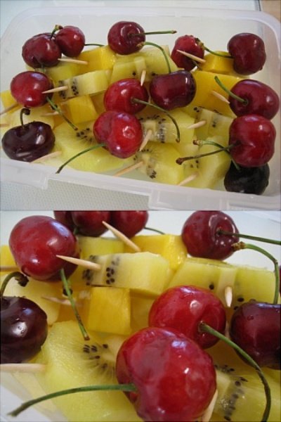 신랑과일 도시락- 키위와 망고에 이쑤시개 꽂아서... ^^