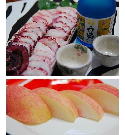 데친문어와 사케. 복숭아..(별거없네요;;ㅋ)