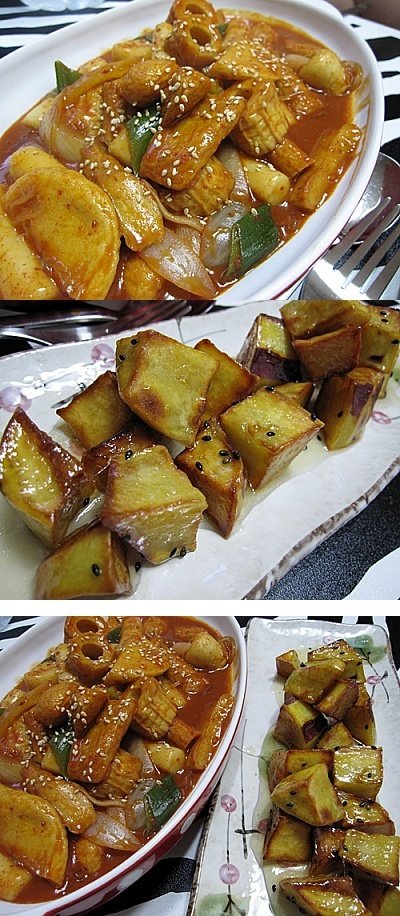 떡볶이에 람면사리넣어주고, 고구마맛탕까지...