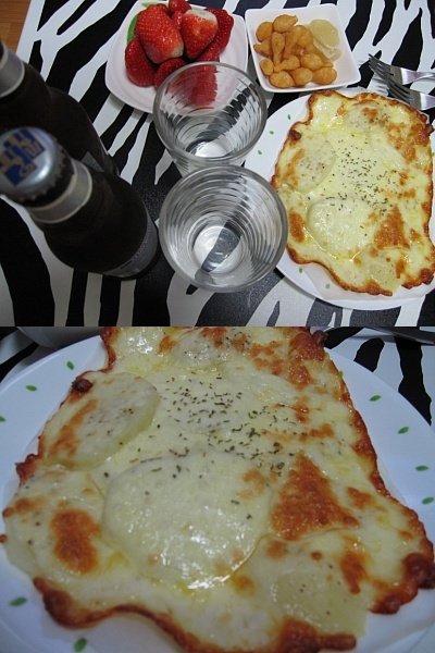 데친감자에 허브솔트 뿌리고 피자치즈 뿌리고 오븐에 슝~ 담백하면서도 느끼한 맥주안주.