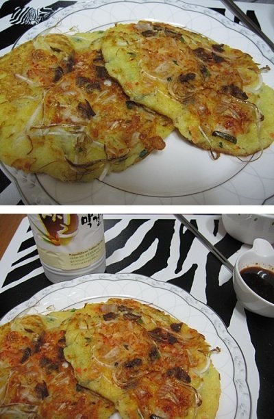 신김치, 돼지고기, 숙주나물 다져넣고 부친 녹두전