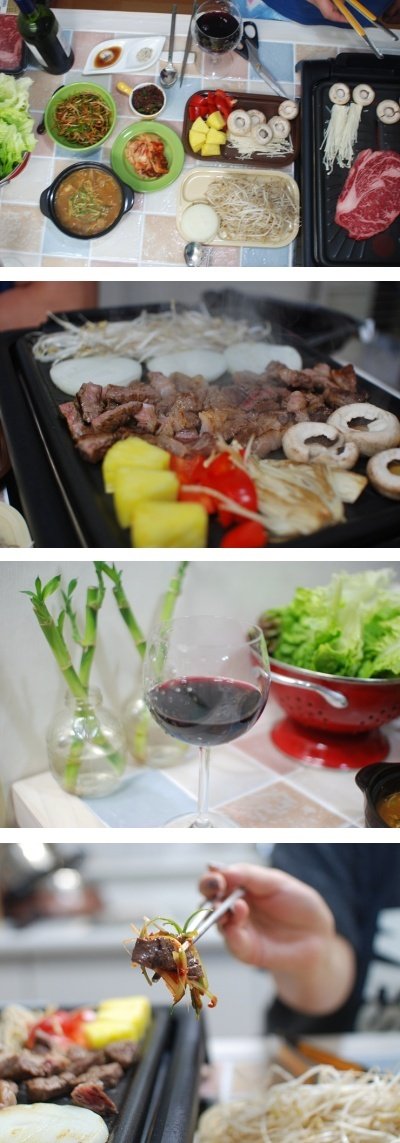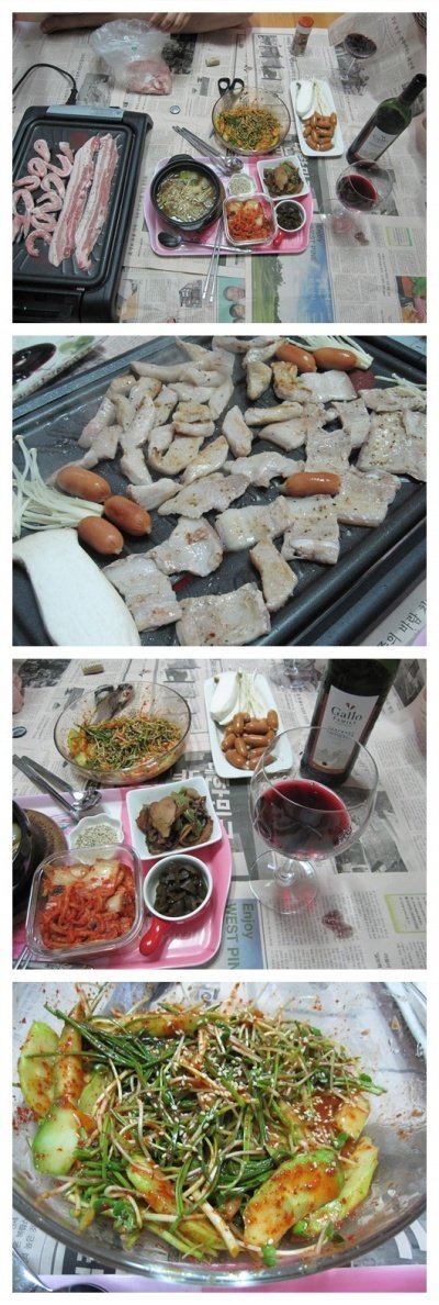 고기 땡기면 마트가서 고기사다 거실에 신문지 깔고 잘도 구워먹는 우리부부.