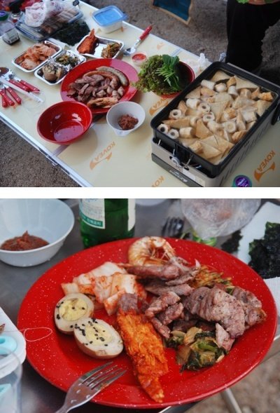 캠핑가서 만든 오뎅탕과 내가 만들어서 가져간 밑반찬들