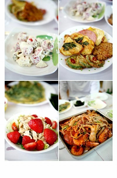 해물찜과 샐러드, 전... ^^ 신나게 만들고 신나게 떠들고 놀다가 낮술에 취해서.....