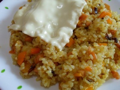 카레볶음밥위에 치즈(남편이 뜨거운밥에 치즈 올린거 좋아함)