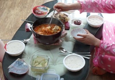 잠자리 바껴서 잘 못 자는 나와 잘 자는 친구들 다 깨워서 김치찌개 끓여서 먹임ㅋㅋ