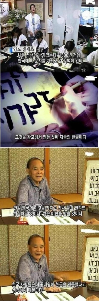 나는 전생에 원숭이 조련사였는데 1500년전 일본에 원숭이 쇼를 한다고 나두고 간 적이 있다.그것이 발전해서 된 것이 일본인이다.만일 이것을 일본에 가지고 가서 발표 한다면 위험해질 것이다. 많은 비판을 받을것이다.일본 사람들은 자신들의 조상이 자신을 만들어 주었다고 생각하기 때문이다. ----------------------------------베플 감사합니다^-^