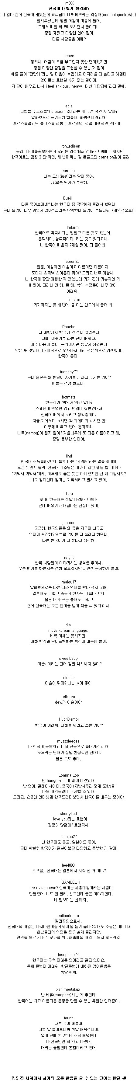 P.S 전 세계에서 세계의 모든 발음을 쓸 수 있는 단어는 한글 뿐