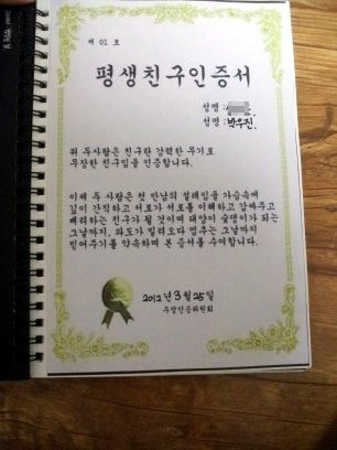 일곱번째장! 우정글귀와 다음장이 사진일것이라는 예고....ㅋㅋㅋㅋㅋㅋㅋㅋㅋㅋㅋ