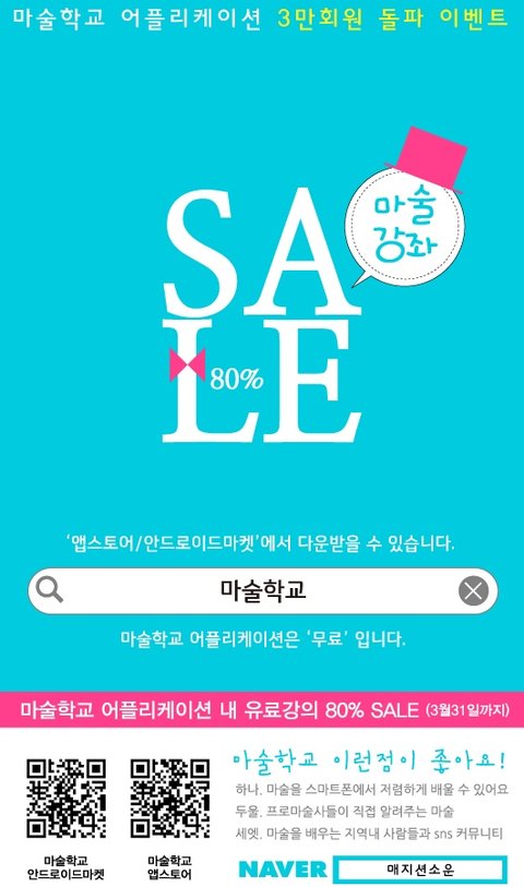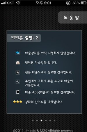 먼저 마술학교 어플은 안드로이드마켓과 앱스토어에서 뮤료로 다운받으실 수 있습니다.