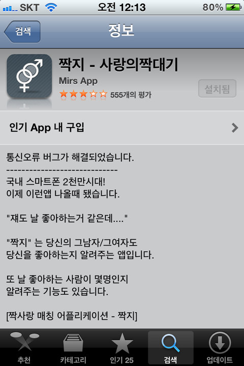 자기 마음을 먼저 밝히지 않고 확인할 수 있는 좋은 어플인데 나온지 꽤 돼서 사용자도 많아