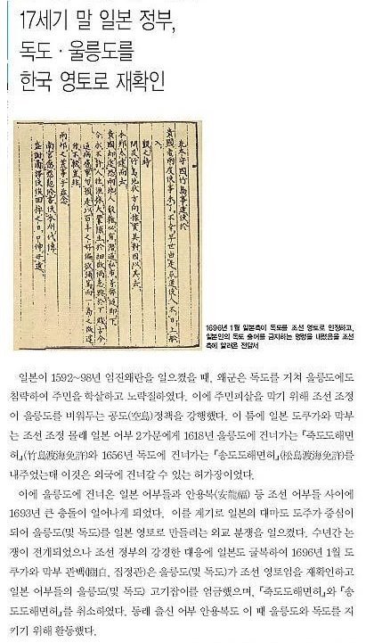 3.17세기 말 일본정부는 울릉도와 독도에서의 어획을 금지했다.