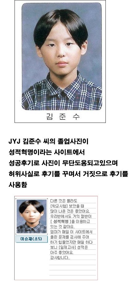 시아준수 어릴적 졸업사진이 성적혁명이라는 사이트에서 이승재라는 학생으로 둔갑되서 무단도용되서 허위사실이 유포되고있습니다. 밑에는 사이트 바로가기입니다. 시아준수 팬들의 힘을 보여주세요