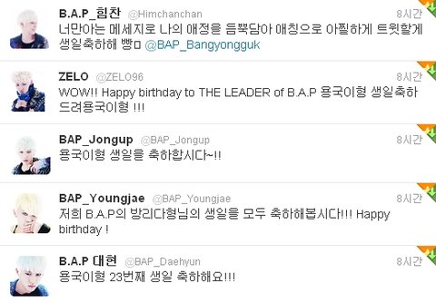2회 ● B.A.P멤버들 방용국 생일축하 트위터
