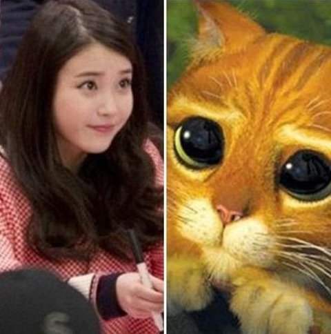 슈렉에 나오는 고양이의 표정과 아이유의 저 표정 너무너무
