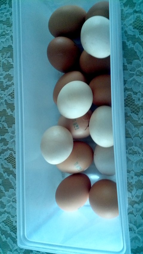 현재 글쓴이 집의 계란통 상태임 저기보이는 하얀알들은 모두 치킨이 낳은알임 누런건 사온 달걀이고