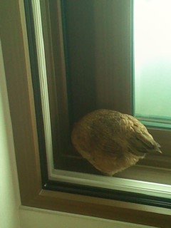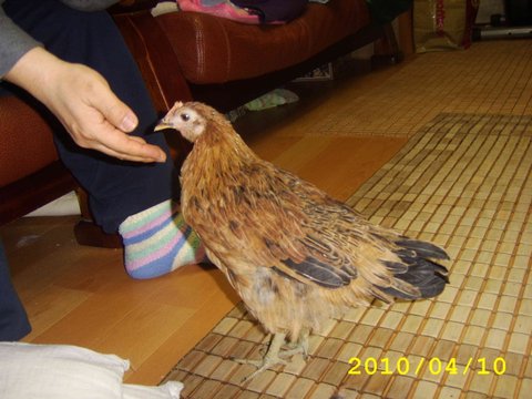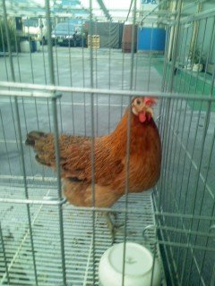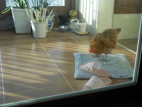 집에서 키워서 그런지 다른 닭들보다 덩치가 훨씬 작음 또 영양이 부족해서 볏도 옆으로 기울어짐![]()