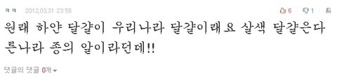 아진짜요?? 저희 치킨 토종닭이에요! 처음엔 알이 하애서 무슨 문제가 있나 했더니 그렇군요!
