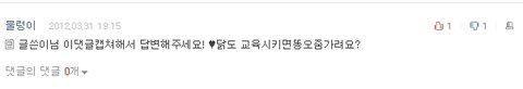 보통 사람들이 머리나쁜사람에게 이 닭대가리야! 그러곤 하죠?? 닭 정말 머리 나빠요 가끔씩은 자기집 들어가는 방법도 몰라서 낑낑대요ㅋㅋ 닭은 오줌을 안싸요! 근데 그대신 똥을 너무많이싸요![]()