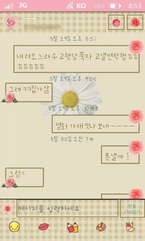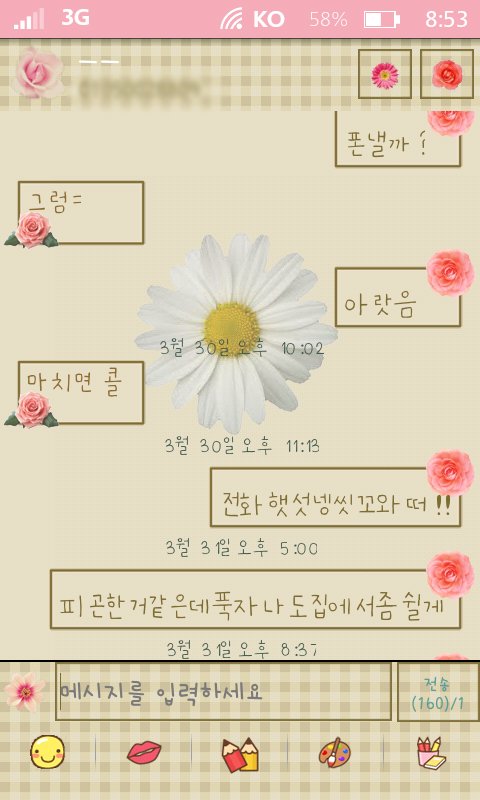 그래서 문자로 "씻고왓당전화해썻넹" 하니까 그대는 묵묵부답