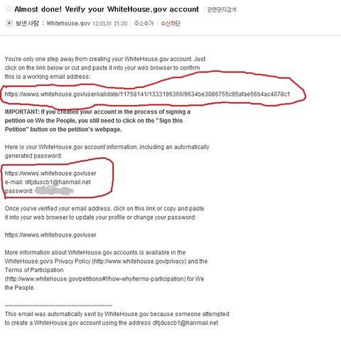 그러면 여기서 메일로 whitehouse.gov에서 메일이 올거에요! 메일 확인을 하시면!