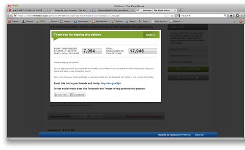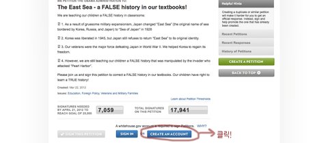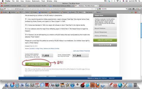말그대로, 백안관에서 25,000명이 4월 21일까지 서명을 하면 동해(East Sea)로 표기를 한다고 하네요