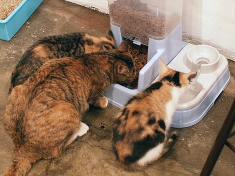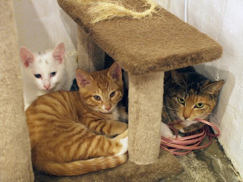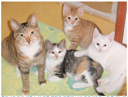 - 엄마 동이와 기쁨 (삼색이/딸) 미키(흰둥이/아들) 사랑(치즈태비/아들)