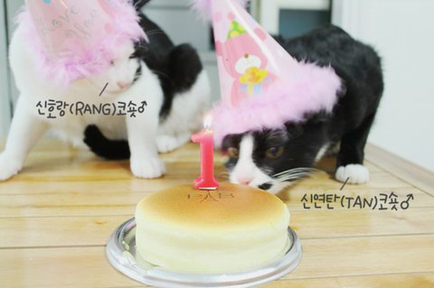 완전 완전 소중한 냥이덜의 1년을 축하하며! ![]()