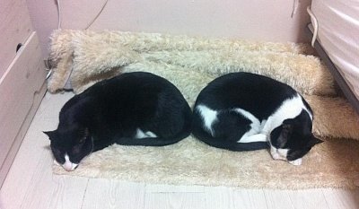 갑자기 깨물고 시비를 걸어 싸우다가 다시 같이 잠자고 하는 냥이들의 일상.