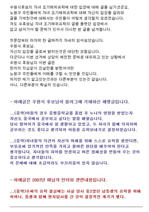 자식은 유학보내고 교육특구의 지역구 의원으로 나왔다는 사실과
