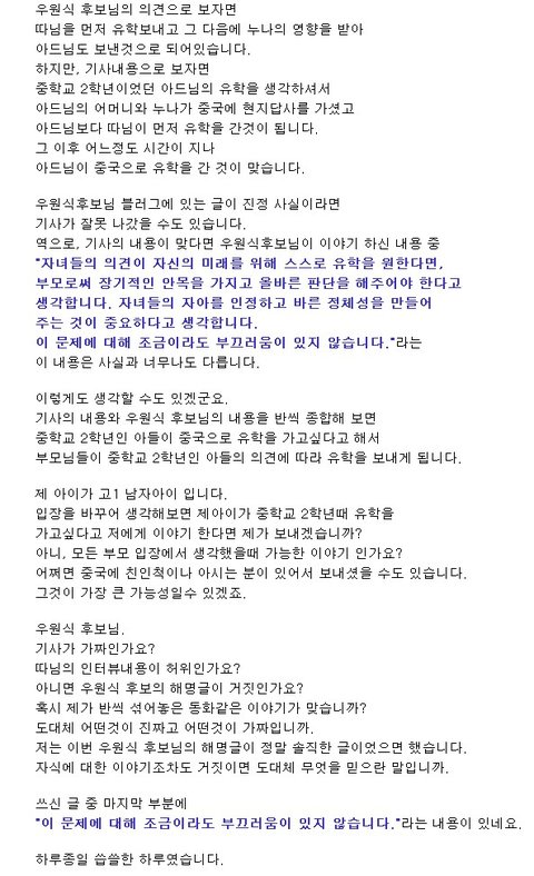 해명을 하려고 했으면 자식의 자아를 존중했기에 유학을 보냈고 아버지로써 어쩔수 없었음에 대한 양해를 구했어야 한다고 생각합니다.