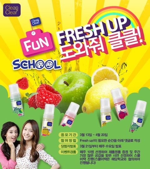 10대들의 화장품인 클린앤클리어 신제품 후르츠 클렌저 출시기념 학교 Fresh up!이벤트