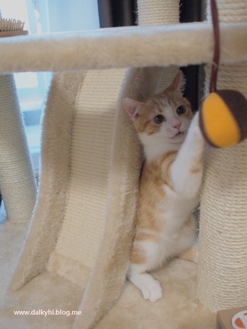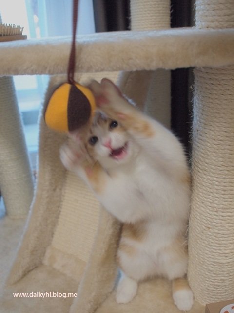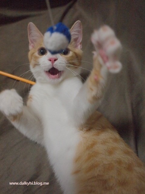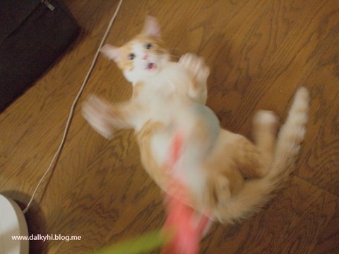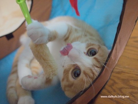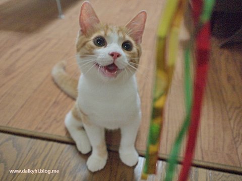 처음 킷털 장난감을 사온 날... 저래 해맑음... 지금도 가장 좋아하는 장난감이 새깃털 장난감임~