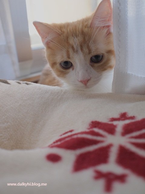 역시 아직 아기냥이라 호기심이 왕성함~ (저 문양은 몰까냥~ 먹는건 아니냥?)