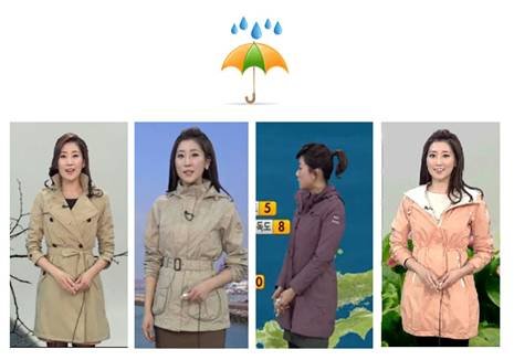 9시 뉴스에 기상캐스터들의 옷차림을 보면 다음날 코디의 tip을 주는 것을 알 수 있는거죠!