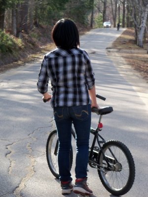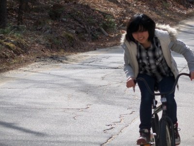 이번엔 T도 자전거를 들고!! 가기 전에 T 여동생이 찍어줬음!!