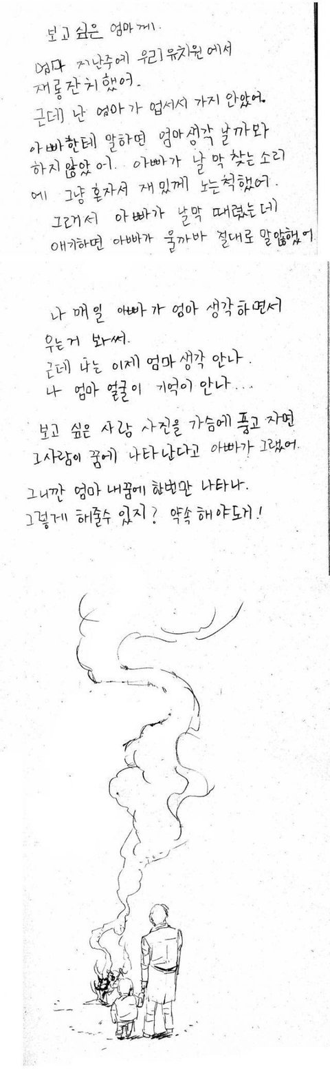 라고 말하더래요....이상하다고 느낀 엄마는 갑자기 눈물이