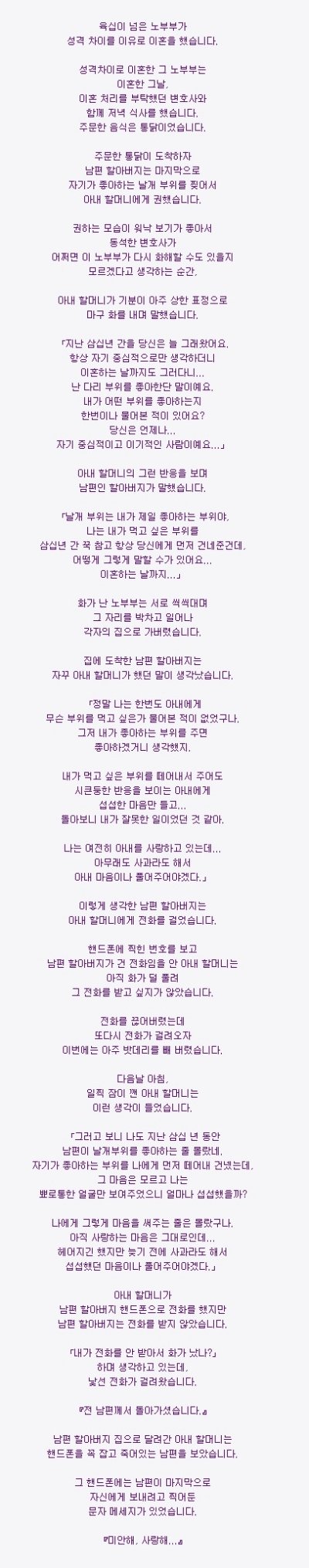이말을 들은 남편은 서럽게 울기 시작했습니다