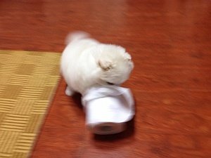낑낑대길래 꺼내놨더니 휴지가지고 잘도 논다..개느님? -.-