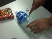 1번 페트병을 절반 이상 자른다. 조심:페트병 뜨거운 물 넣으면 약간 찌그러짐!.