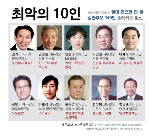 (누락된 사람 알려주세요. 부산 중구.동구의 정의화는 국회부의장으로써 표결 사회를 진행했기 때문에 추가했습니다.)