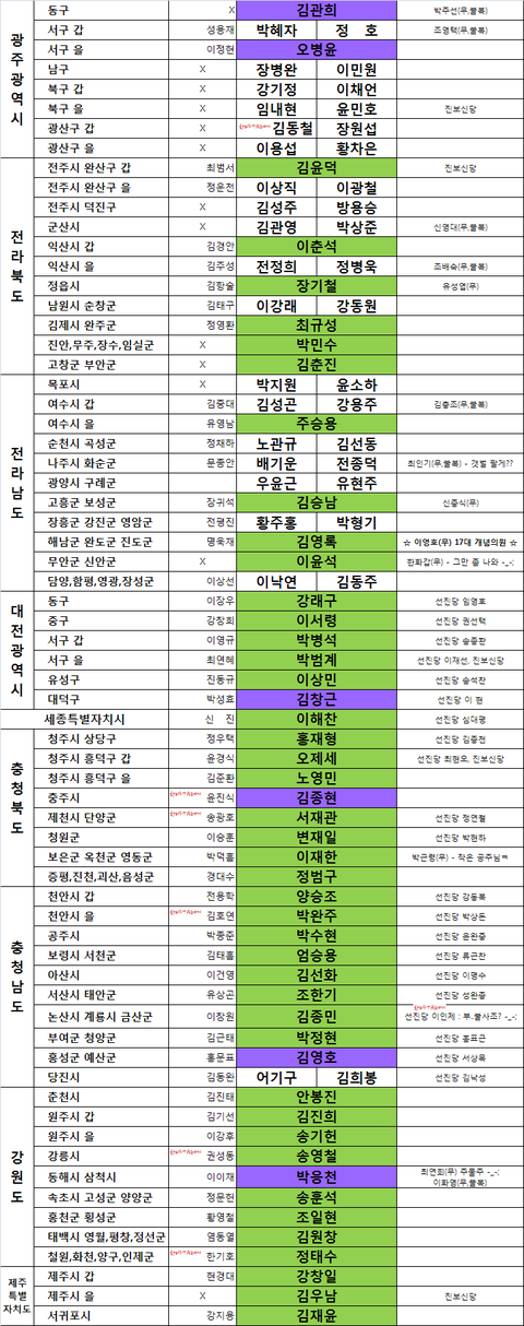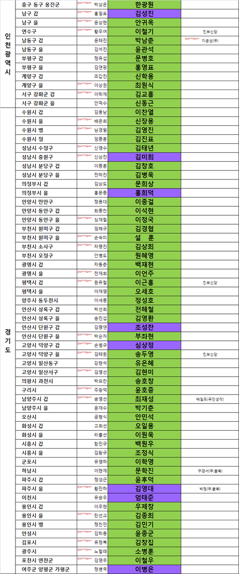 4. 비고에는 해당 선거구의 특이사항을.. 편집자가 아는 선에서 기록했습니다.
