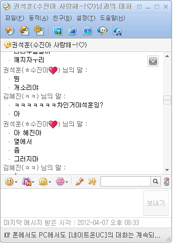 따끈 따끈 실시간 네이트온대화임 귀엽게 봐주세요>ㅁ<