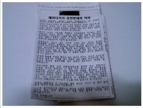 절대로 대한민국 이 성스러운 땅에 레이디 가가를 글여놓지