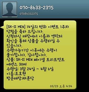 매주 1000명에게 SK-II MEN 피테라 에센스를 주는 이벤트였는데저도 당첨이 된 거죠~~ ^^