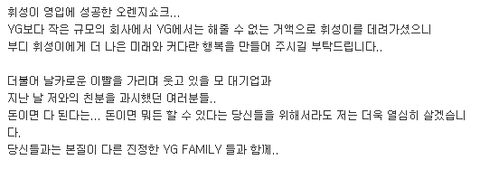 마지막으로, 와이지가 패밀리 운운하더니 패밀리가 아니다.