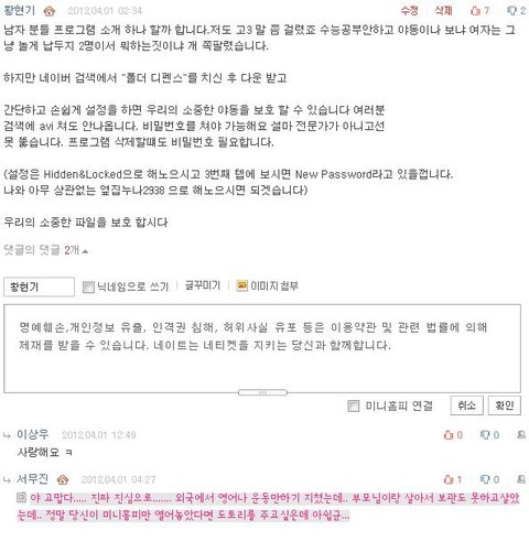 2. 파일을 열람할려면 자신이 설정한 비밀번호가 필요합니다. (=가족 중에 컴퓨터전문가가 있다면 GG)