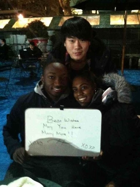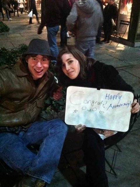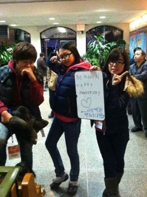 기념일을 축하하기위해 비도오고추운날 고생을했데요.