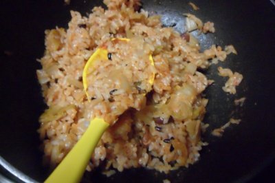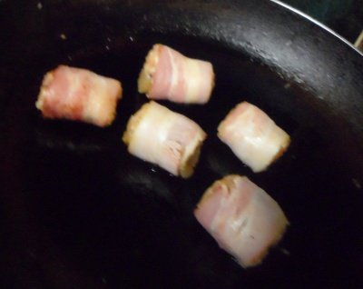 김치볶음밥해서 베이컨에 말아 굽기........