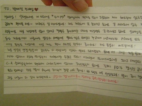 이걸 한 장에 3등분해서 써줌. PD들은 더 많이 써줬음.ㅋㅋ..